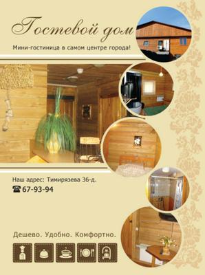 Мини-гостиница "Гостевой дом" приглашает жителей г. Иркутска и гостей города отдохнуть. "Гостевой дом" исполнен в русском стиле иэ экологически чистого материала - дерева. У нас легко дышится. Мы расположены в самом центре города рядом с ц.рынком, деловыми, развлекательными центрами и т.п., 5 мин. до автовокзала, 10-15 мин. до аэропорта, 15-20 мин. до ж/д вокзала. Имеется бар, где по желанию гостя можно закаэать как холодные, так и горячие блюда, напитки